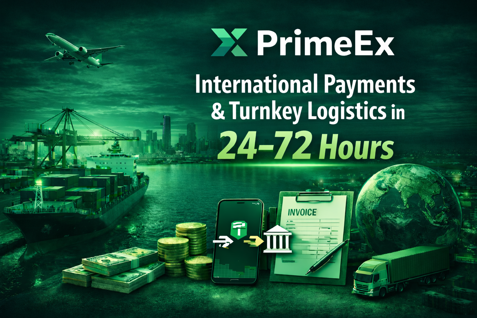 Помимо платежей PrimeEx может закрыть процесс полностью: оплата + сопровождение сделки + логистика. Мы можем помочь с координацией доставки, карго, документооборотом и контролем исполнения — чтобы клиент получил результат “под ключ”, без лишней нагрузки на команду. Business Cross-border Settlement Layer — это следующий шаг PrimeEx в сторону инфраструктуры международных расчётов нового поколения: скорость крипты + логика корпоративных платежей. Подключение и условия — по запросу.